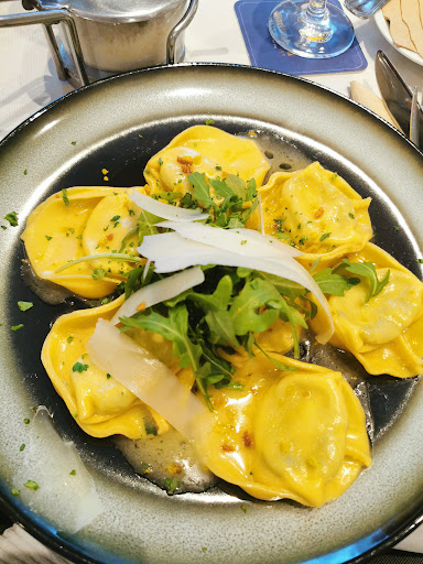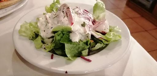 Read moreWir waren mit der Family zum Essen, Tisch reserviert für 18 Uhr, das dann bestellte Essen kam aber erst fast 1,5 Stunden später. Das Essen für ein Teil der Kleinsten kam zum Glück früher. Dennoch dauerte es ungewöhnlich lange, gar nicht gut. Vermutlich völlige Überlastung und Überforderung der Küche, da haufenweise Pizzen auch nur abgeholt wurden. Die Bruschetta kannte ich in der Form auch noch nicht, durchgeweichtes Brot, das war nicht so mega. Die Pizzen wirkten wie Teiglinge, alle gleiche Form, fast keksig. Der Belag allerdings sehr reichlich und gut. Andere bestellte Speisen waren lecker. Das Ambiente im Wintergarten war angenehm. Letztlich war es okay, aber auch nicht mehr, ganz schlecht die extrem lange Wartezeit...