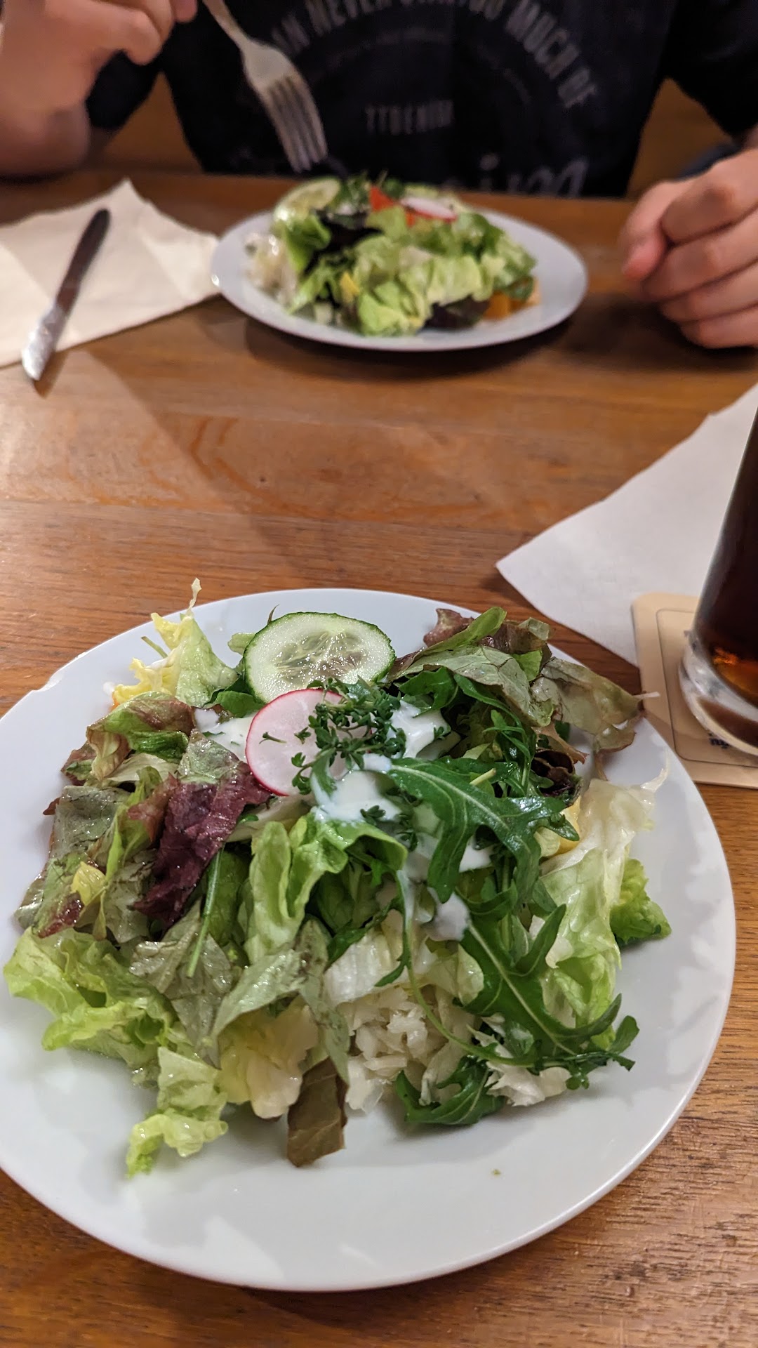 Read moreWir waren zum gemeinsamen Essen eingeladen an Weihnachten. Nun das es an Weihnachten eine extra Karte mit geringerer Auswahl gibt um die Massen abzufertigen kann ich verstehen und hab dafür auch Verständnis. Aber das es kein Gericht für Kinder gibt, auch nicht auf Nachfrage einfach enttäuschend nicht jedes Kind möchte Ente, Wildschwein,Schäuffle essen..... Nun zum Essen: Die Maronensuppe war ok leider etwas breiig, die Rinderbrühe war sehr salzig (vielleicht zu lang warm gehalten) Bei meinem Rumpsteak wurde ich nicht einmal gefragt wie ich es haben möchte, als es dann vor mir stand hab ich es erst nicht gesehen da es von einer pambigen Pilzsosse überzogen war. Das Fleisch war fast durch gebraten und daher zäh und leider war auch kein Salz und Pfeffer am Fleisch........ Das Schäuffle war gut allerdings war das Rotkraut sehr vom Zimt erschlagen und matschig....... Ich hab auch noch das Wirsinggemüse probiert was ja optisch nach ...... aussah, und furchtbar war .