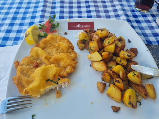 Hallo zusammen! Ich wohne jetzt seit ca. 8 Jahren in Marl und bin schon oft am Haus Büning vorbeigefahren … und war stets neugierig. Was mir dann den sprichwörtlichen Tritt in den Hintern gegeben hat, war ein Schild, das an der Straße stand, auf dem auf das Schnitzel All-you-can-eat hingewiesen wurde. Hab mich jedoch leider im Tag geirrt, und so mussten wir etwas von der Karte bestellen. Das Essen war wirklich sehr, sehr gut. Wir hatten allesamt Schnitzel, die halt mehr kosten als in einer Pommesbude … aber den Preis sind sie wert. Man schmeckt nicht nur die Qualität der Produkte, sondern auch die der Zubereitung. Unglaublich, dass ich mal wieder essen war und nichts zu meckern habe. Was mir auch ganz wichtig ist, was viele hier schon erwähnt haben: das Personal ist Spitze. Die beiden Herren am Eingang und die Dame in der Küche … alle haben einen angelächelt und einem vermittelt, dass man willkommen ist. Auch das regelmäßige Fragen, ob alles in Ordnung sei, ob man noch Wünsche habe oder ob es das angebotene Dessert-Special am Ende war. Das Essen war unglaublich gut und hat uns allen gefallen! Nächste Woche geht es dann zum All-you-can-eat (eigentlich bin ich kein großer Freund davon, aber ich wollte das mit dem Schnitzel schon immer mal machen, zumal es dann noch in einem Restaurant angeboten wird… da kann ich nicht widerstehen!) und auch danach werden wir mit Sicherheit wiederkommen. Klar, wenn es finanziell drin wäre, täglich. So aber vielleicht einmal im Monat, um sich einfach mal etwas Gutes zu tun. Man lebt nur einmal. Danke an das Team vom Haus Büning! Ihr leistet einen...