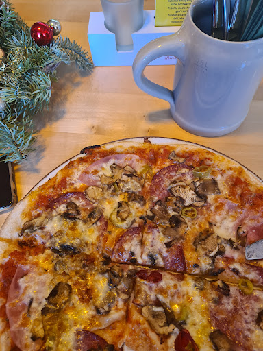 The pizza was okay, but we had to wait 1 hour and then ask what is up with our order. The waitress avoided looking at us, so we had to go inside to ask. Needless to say that was a frustrating experience. After we asked, we got our order (2 salads and 2 pizzas) in 5 minutes, which is probably the time it took for them to make it, but still they had us wait an hour first. The staff was otherwise friendly, but I would have appreciated an apology, or even a complimentary drink for the latency. The food was okay, as I mentioned before, but maybe a bit pricey (10+ euro pizzas) for what it was. The view from the restaurant is spectacular, so 5 stars for...