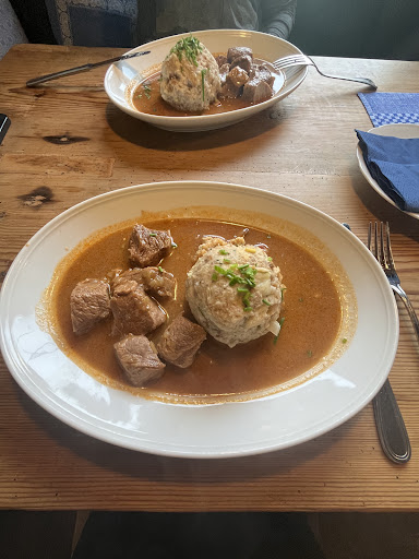 Das wohl beste Essen während unseres Besuchs im Bayerischen Wald bekamen wir in dieser kleinen Pension und Wirtschaft. In einer schön restaurierten alten Wirtsstube servieren die Wirtsleute Gerichte, für die sich der Wirt/Koch auf Zutaten aus der Region stützt. Er bereitet klassische bayerische Gerichte und Besonderheiten zu, alles mit eigenem Touch und sehr viel Qualitätsbewusstsein. Was auch dazu führt, dass die Speisekarte nicht besonders groß ist - was ich aber schon seit Längerem als Hinweis auf Qualitätsbewusstsein des jeweiligen Kochs schätzen gelernt habe. Beim ersten Besuch gab's zuerst eine Rinderbrühe mit Wildkräuter-Pfannkuchen-Streifen, ein Gedicht. Danach ein Kutschergulasch mit ausgezeichnetem Rind und einer perfekt abgestimmten, kräftigen, aber nicht zu schweren Sauce, die die Aromen des Fleischs unaufdringlich, jedoch mit bereichernden Nuancen stützte. Außerdem überraschte ein Putengeschnetzeltes mit frischem Spargel - eine eher ungewöhnliche Kombination, aber sehr angenehm abgestimmt. Nimmt man noch den äußerst netten Service durch die Wirtin hinzu, dann haben wir ein perfektes Abendessen erlebt. Das bestätigte sich auch beim zweiten Besuch. Feinwürziges Glaslfleisch, angerichtet mit Zwiebeln und Salat, danach einerseits ein gut gemachter angebräunter Leberkäs sowie ein perfekt gebratenes Rumpsteak vom lokalen Rind, beides mit krossen Röstkarroffeln - etwas mehr die Basics, aber ebenfalls von ausgezeichneter Qualität und Zubereitung. Die Säumerpfad-Wirtslaute haben auch einen hauseigenen Kräuter/Beeren-Schnaps - sollte man auf jeden Fall probieren. Und wenn sich die Beschreibung des Essens sehr fleischlastig anhört: Es gibt auch vegetarische Gerichte...