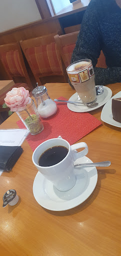 Nie wieder!!! So etwas Schreckliches habe ich schon lange nicht mehr zu mir nehmen müssen! Die Bedienung hatte den Charme und die Ausstrahlung einer Dampfwalze! Ich hatte eine Tasse Kaffee bestellt und leider nicht ausdrücklich 'Cafe Creme' geordert. Nachgefragt oder gar angeboten wurde er mir nicht. Der Filterkaffe (dass es so etwas überhaupt noch gibt) war eine dünne Plörre und der Bienenstich dazu schmeckte nach Chemie und synthetischen Inhaltsstoffen und nicht nach einer leichten, sahnigen Creme. Wäre ich doch bloß ein paar Meter weiter gelaufen - es gibt eine ganz liebevoll gestaltete Kaffeerösterei mit köstlich aussehenden Törtchen und einer sehr freundlichen Dame, die gerne und sachkundig über ihre Produkte Auskunft gibt. Schade, dass in Deutschland leider noch immer solch eine schlechte Qualität geboten und seitens der Klientel ja anscheinend auch angenommen wird! Jeder simple italienische Eissalon bietet schmackhaften Kaffee an nur deutsche ''Etablissements' bekommen das...