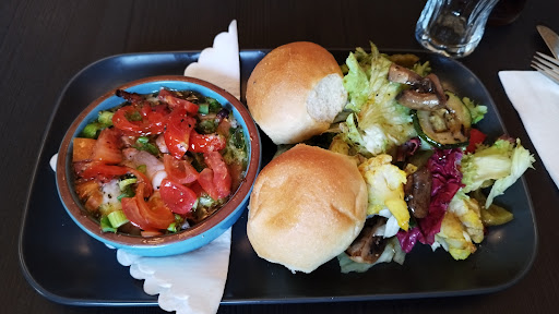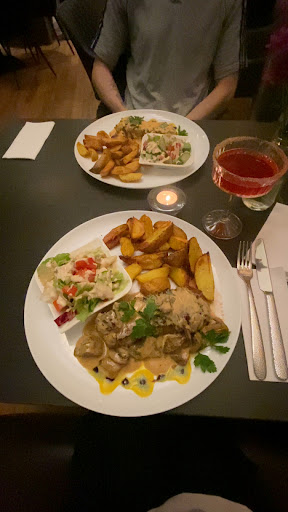 Bei der gefüllten Zucchini gab es für uns aber ein Logikproblem. Es hieß "Gefüllte Zucchini MIT Gemüsebratling und Pommes". Es waren aber keine Bratlinge zu finden. Uns wurde auf Nachfrage erklärt das sich die Bratlinge ALS FÜLLUNG AUF der Zucchini befänden. OK, vielleicht nur für Uns seltsam, möchte Ich aber für nachfolgende Restaurantbesucher festhalten.