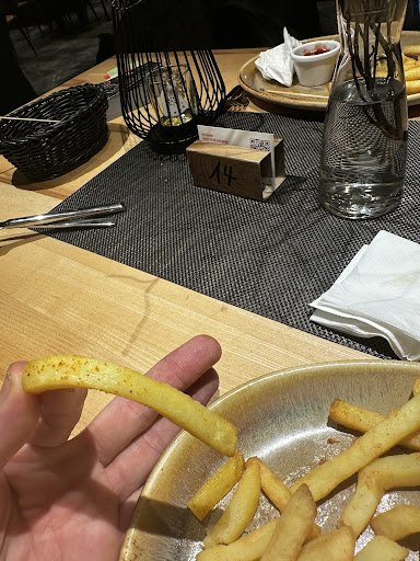 Bedienungen haben sich unterhalten und uns nicht direkt Aufmerksamkeit geschenkt als wir das Restaurant betreten haben. Bedienungen waren sonst freundlich. Die Apfelschorle hatte einen komischen Geruch. Tisch war klebrig. Das Bruschetta als Vorspeise (in der Speisekarte ohne die Zutat Käse + Allergen Milch) war mit Parmesam. Als wir gesagt haben, dass wir es ohne Parmesan (der am meisten auf dem Rucola war) wollen, wurde vom Küchenchef nur der Rucola entfernt. Der Käse war trotzdem noch auf den Brotscheiben drauf. So geht man nicht mit Gästen um! 👎🏻🙄 Daraufhin sagte die Bedienung uns, dass es ein Getränk aufs Haus gibt. Wir haben um 19:10 Uhr das Restaurant betreten und haben erst um 20:39 Uhr unsere Hauptspeisen erhalten. Die Pinsa "vegan" wird mit hoher Wahrscheinlichkeit mit nicht veganem Pesto serviert. Die Bedienung wollte zweimal den Küchenchef aus der Küche holen, doch dieser hat sich nicht rausgetraut. 😒 um zur Toilette zu gelangen muss man über Wasserkästen drüber steigen. 😤 Wir mussten nach dem Besuch im Restaurant noch woanders essen! Insgesamt : schlechte Erfahrungen gemacht! Wir werden dieses Restaurant nie wieder besuchen und unseren Bekannten davon abraten....