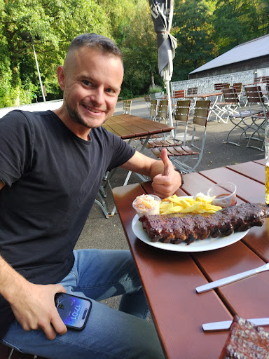 Read moreDieser Biergarten gelegen am Gelände der Landesgartenschau von 1972 glänzt durch seine Nähe am Park und seinem Guten besonderen Bieren. Gastronomisch hat meine Familie hier ein Hamburger Menü bestellt. Der Burger wird frisch gegrillt und zubereitet. Dieser hat uns allen sehr gut gemundet. Leider waren die Fritten zu lange frittiert und sehr hart. Die bezahlte Mayonnaise war in meinen Augen nicht annähernd genügend. Gefehlt hat mir hier ein leckerer Salat und etwas leichter bekömmliche Speisen. Die Bedienung war sehr nett, wenn auch etwas beschwipst. Ich persönlich mag es nicht, wenn Angestellte einer Gastronomie während Ihrer Arbeitszeit trinken. Preislich liegt das Burger Menü in meinen Augen zu hoch. Für diesen Preis kann man ein paar Schritte weiter auch gut kroatisch dinieren.