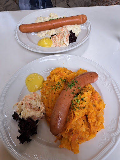 Das Essen ist gut bürgerlich. Die Rouladen war etwas trocken, aber es war essbar. Portionsgröße war gut. Für kleine Kinder aber zu groß. Kindergerichte gab es nicht. Preis - und Leistungsverhältnis ist gut. Die Tische und Stühle wurden nach jedem Gast gründlich mit Desinfektionsmittel gereinigt. Speisekarten und Kugelschreiber ebenfalls (sic!). Die Bedienung kann aber beim servieren, auch in einem Biergarten, etwas mehr die gewohnten Standards einhalten, z.B. den Zucker für den Espresso nicht einfach auf den Tisch fallen lassen, der Keks zum Espresso...