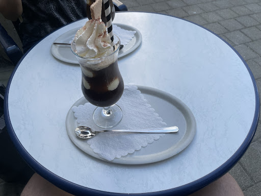 Super nettes, kleines Cafe im Ortskern der Gemeinde. Parkplätze sind vorhanden. Wir waren hier mehrfach schon Schleckeis (Eis auf die Hand) holen und sind super zufrieden. Das Cafe ist ein „Ein-Mann-Betrieb“, daher gibt‘s es eine Klingel wenn man ein Eis möchte und dann kommt der Betreiber.