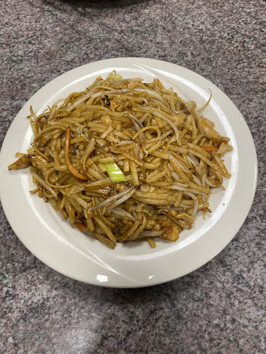 Ich hatte Hühnchen, Curry, gebratene Nudeln, mein Mann Rind kung Bao mit gebratenen Nudeln.