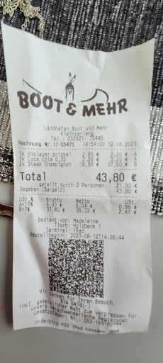 Read moreBoot & Mehr ist immer ein fester Bestandteil unseres Törnplans. So war es auch in diesem Jahr im Mai. Wir freuten uns auf das Ambiente, aber vor Allem auf die Boot & Mehr Crew. Auch wenn man sich nur einmal im Jahr sieht, ist es doch sehr vertraut, wenn man dort einläuft. Freundlich wurden wir vom Inhaber schon am Steg begrüßt. Nachdem unser "Schiffchen" festgemacht war, freuten wir uns nach ca 7 Stunden Reisezeit auf lecker Essen und ein kühles Blondes. Mit Beidem konnte uns nach ganz kurzer Wartezeit (Lokal war sehr gut besucht) geholfen werden. Wir hatten das Steak au four und die Currywurst. Unsere diesjährigen Begleiter kannten die ehemalige DDR Spezialität nicht und waren von dem Steak au Four, genau wie ich, begeistert (Grüße an den Seniorchef). Ich kann die vereinzelt negativen Rezensionen ehrlich gesagt nicht verstehen. Die Boot & Mehr Crew ist zuvorkommend, witzig und absolut Gästetauglich !!! Wenn man freundlich fragt, bekommt man eigentlich fast Alles. Vielleicht kann man das von den "Negativverfassern" nicht behaupten !? Egal, wir waren wie immer sehr zufrieden mit unserem Besuch, so dass wir sogar auf dem Rückweg von Fürstenberg nochmal zum Kaffeetrinken und Kuchenessen angehalten haben. An diesem Nachmittag war dann auch der Hafenmeister am Steg und lotste meinen Begleiter, der an diesem Anleger noch nicht festgemacht hatte, zielsicher, freundlich und professionell an den Pollern vorbei. Von wildem Herumschreien oder Ähnlichem überhaupt keine Spur. In diesem Zusammenhang nochmal viele Grüße an Andreas. Den einzigen negativen Punkt den ich hätte, ist der, dass Boot & Mehr leider von uns zu weit weg ist und wir nur einen Besuch im Jahr realisieren können :-) In diesem Sinne wieder einmal vielen Dank für Speis und Trank und Eure Gastfreundschaft lieber Raimund .... bis zum nächsten Mal !!!