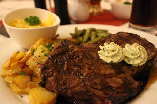 Besonders hervorzuheben sind aber die Steaks. Wir sind als regelmäßige Amerika-Urlauber ziemlich verwöhnt, was gute Steaks angeht und haben uns eigentlich abgewöhnt, sie in Deutschland überhaupt noch zu bestellen. Meistens bekommt man bitter schmeckende Schuhsohlen serviert. Hier nicht! Das 350 g Ribeye war ein Gedicht! Ein Steak, wie es sein muss: Butterweich, den Garpunkt medium-rare perfekt getroffen, kräftige Grillaromen, super im Geschmack. Sehr...