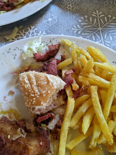 Die Salate für fast 15€ fand ich optisch ansprechender, haben den Damen auch geschmeckt. Eine fand einen hühnereigroßen Salatstrunk in ihrem Salat, das was normalerweise im Abfall landet. Unter anderen Bedingungen hätte ich mein Essen zurückgegeben, meine Frau fand es aber unpassend weil wir doch Gäste haben... Auf die Frage, ob wir zufrieden waren, bekam die Servicekraft eine ehrliche Antwort, was sie mit "OK" quittierte. Fazit: Kostendruck und Fachkräftemangel führen dazu, das man für fast 20€ Tiefkühlschnitzel serviert bekommt ( bitte belehrt mich im Kommentar falls ich mich irre), so kommt kein Gast ein zweites Mal. Leider reiht sich diese Erfahrung ein in das was ich momentan in der Gastronomie erfahre: absurde abgehobene Preise bei schlechter Qualität. So stimmt das PLV für mich leider nicht. Keine Empfehlung meinerseits, meinem Labrador hat's...