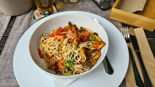 Read moreIch war hier mit unserem Besuch zum Mittagessen. Da sehr schönes Wetter war wurden wir in den Biergarten geführt. Mein erster Eindruck war, als wäre ich draußen in einer Gartenkantine. Tische und Stühle erinnerten mich an längst vergangene Zeiten ( aber vielleicht soll es auch Retro sein ). Am schlimmsten aber ist das grobe Kiesbett, Frauen in Absatzschuhen haben's da schwer. Warum keine Terrassenplatten? Die Bedienung allerdings war sehr nett und flott, wir bekamen schnell unsere Getränke und auch das Essen ließ nicht lange auf sich warten. Alles sehr schön angerichtet und geschmacklich super gut. Leider kann man nur bar bezahlen, Karten werden nicht akzeptiert, was ich in der heutigen Zeit etwas merkwürdig finde. Gaststube und auch die Toiletten sind top, wir kommen trotzdem wieder weil's so...