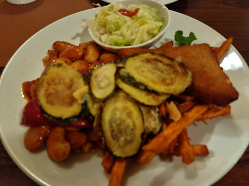 Was jedoch absolut unangemessen war, war die Wartezeit auf die Hauptspeise. Nach knapp über einer Stunde für einen veganen Teller und Spaghetti mit Garnelen. Auch waren bereits gestranke seit über einer halben Stunde leer - Service gab es leider nicht, denn gefragt wurde nicht, ob es vielleicht noch ein Getränk sein darf. Die Spaghetti lauwarm und leider übersalzen, unschön "angerichtet" - leider kein Foto wert und ehrlichweise hatte ich es dann nur gegessen, weil ich einfach keinen Nerv hätte nach einer so langen Wartezeit noch irgendwo anders zu essen. Meiner Begleitung hat das Essen jedenfalls insoweit geschmeckt, dass sie die Hälfte gegessen hat. Gefragt wurde wir nicht, ob es geschmeckt hat. Vielleicht auch deshalb, weil klar war, dass wir Unzufriedenheit waren und das auch sein konnten.