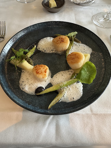 Read moreWir haben im Landhaus Mönchwerth am frühen Samstag Abend zusammen mit Freuden gegessen. Der Tisch erlaubte einen Blick auf den Rhein, und das Ambiente wurde nur wenig durch den Fluglärm des Düsseldorfer Flughafens beeinträchtigt. Aber darauf hat vor Ort ja niemand einen Einfluß. Das Restaurant war bei weitem nicht voll besetzt, dennoch schaffte man es nicht, die bestellten Hauptgerichte in einer angemessenen Zeit zu servieren. Zwischen Vorspeise und Hauptgericht lagen 50 Minuten. Als ich vorsichtig andeutete, dass ich nun gerne essen würde, da 2 Personen von uns keine Vorspeisen gewählt hatten, sagte man mir, dass man sich bemühe bald zu servieren, dass man aber mit diesem Zeitablauf immer rechnen müsse. Der Service war zwar sehr freundlich, aber nicht gut. Die Auswahl an vegetarischen Gerichten war sehr übersichtlich, und jeder von uns wählte ein anderes Gericht. Ich hatte keine Vorspeise, und als Hauptspeise Kamm vom Lamm mit Rattatouille und Wildbrokkoli und als Nachspeise eine Panna cotta in einer Art Orangenjus. Beides war keine Offenbarung. Das Lamm war medium wie gewünscht, aber einfach langweilig. Der Orangenjus zum panna cotta war süss wie Orangensirup. Zu den Preisen, die für die Gerichte aufgerufen wurden : Kamm vom Lamm 45€ und Panna cotta 17€ wurden unsere Erwartungen nicht erfüllt. Unser Schwerpunkt lag nicht auf einer umfangreichen Weinbegleitung, da 2 von uns keinen Wein tranken, aber die offenen Weine des Hauses die gewählt wurden, wurden beide sozusagen als 'letzter Schluck aus der Flasche' serviert und danach freundlicherweise aus einer anderen Flasche aufgefüllt. Hab' ich so in der Preisklasse bisher nicht erlebt , vielleicht hätten wir dann doch eine Flasche von der Weinkarte wählen sollen. Kurzum, es war kein schlechter Abend, weil wir uns sehr nett unterhalten haben, aber, excusez moi, für 110€ pro Person für ein einfaches Gericht mit einer einfachen Nachspeise, 2 Gläsern Riesling und einem Aperitif ist noch sehr viel...