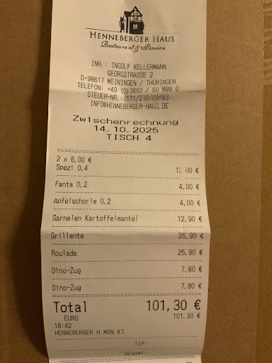 Read moreSelten so was Unangenehmes erlebt! Am 19.6.2022 betrat ich gegen 12:50 Uhr das Restaurant Henneberger Haus .. ich wurde von einer wütenden Dame an der Theke empfangen ..mit einem ablehnenden Gesichtsausdruck erteilte sie den Hinweis, dass das ganze Restaurant belegt ist, dies sowohl im Garten als auch im Innenbereich. ich habe keinen Gast im Innenraum gesehen.. ich sagte, dass ich Hunger habe und mich mit dem bereits fertigen Braten einverstanden erkläre… auch wollte ich nicht länger als 20 Minuten bleiben… die Dame an der Theke wurde noch wütender und sagte, dass sie keine weiteren Diskussionen zulasse .. ein Kellner-Kollege trat seiner Kollegin zur Unterstützung bei und blickte mich zunächst feindselig an , um mir mit lauter Stimme deutlich zu machen , dass draußen 2 Busse voller Gäste auf das Essen warten … doch es war nicht genug .. es eilte noch eine Kellner-Kollegin bei.. diese redete mit weit aufgerissenen Augen auf mich ein ; ich solle verstehen, dass das Personal nicht in der Lage sei, mir ein Essen zu servieren, auch kein fertiges Essen und auch nichts zum mitnehmen.. es seien keine Kapazitäten vorhanden.. Ich finde: diese Energie , welche diese drei Kellner verschwendet haben, um mir mit ihrer ganzen Aggression klar zu machen, dass keine Kapazitäten da sind, um ein Essen zu servieren, hätten sie einsetzen können, um es tatsächlich zu tun.. Doch diese unfreundlichen Menschen haben letztendlich dazu beigetragen, dass ich im Anschluss an diese schlechte Erfahrung ein wirklich tolles Restaurant in Meiningen gefunden habe und das ist das Restaurant Schloss-Stuben, direkt am Schloss .. Ein wahrer Hochgenuss in...