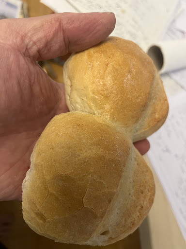 Brot und Brötchen sind wirklich gut! Manche Kuchen (z.B. alles was mit dieser Käseschicht ist) zu fest. Nicht gut, auch der Eierlikör Kuchen, ist nicht gut, mit dieser roten Schicht (Brombeeren Schicht soll das sein), gar nicht gut. Der Schneewittchen Kuchen, die Stachelbeertorte und der Regenbogen Kuchen sind Super. Der Nougat Kuchen ist mächtig! 10.000 Kalorien! Das ist was für Leute, die...