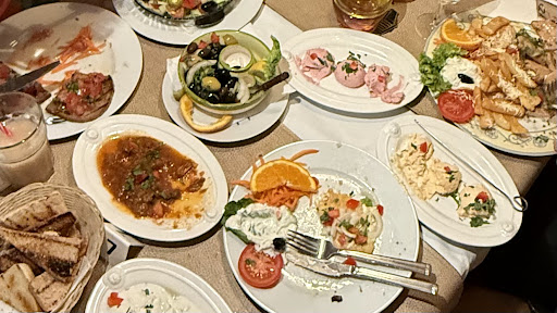 Also wir waren hier 2 mal essen 1 mal vor 2 Wochen und einmal Gestern. Wo soll ich anfangen also essen wie schon einige andere sagen Metaxsa soße is einfach wasser mit Sahne und ich würde schätzen Knorr Gemüse Brühe und damit ungenießbar. Fleisch is egal bei was trocken und versalzen außerdem zu lange gegrillt wurden und es sind beim Gyros und beim Lamm viele Knorpel und Fett das würde so in keinem anderen Restaurant serviert. Die Pommes sind komplett versalzen und ich weiß nicht wie jedes Mal komplett kalt da rettet auch der Käse der drauf is nichts mehr. Der Reis is aber noch schlimmer entweder is er Geschmacklos oder war auch in nem Maggi oder Knorr Bad. Kalmari und Fisch würde ich meinen Feinden hier nicht empfehlen die soße beim Fisch riecht als wäre der 3 Wochen alt und schmeckt sehr toxisch die kalamri wurden 3 mal warscheinlich warm gemacht sind aber trotzdem eiskalt als waren sie gefroren. Nun zu den Getränken beim ersten Besuch Bier ohne Schaum halb leer das heißt stande schon 10 min oder länger an der Theke dann Radler ich WEIß nicht was die machen aber es kann doch eigentlich nicht so schwer sein. Naja dann dufte ich beobachten das das Bier aus Flaschen kommt obwohl eine Zapfanlage da is auf die frage warum sagte eine Dame an der Theke mit schlechtem deutsch sie könne es nicht . Normale Getränke wie cola sind komplett verdünnt und ohne Eiswürfel schade eigentlich. Wo wir gerade bei verdünnt sind wenn ihr einen Ouzo bekommt freut euch aber wir haben uns extra welchen bestellt weil mal bekommt man einen mal nicht auf jeden fall wollten wir gerne einen haben Endeffekt wir haben ein Ouzo Gemisch mit 80 % wasser getrunken. Beim 2 mal war einiges besser gab dann immerhin schaum beim Bier und die Dame hat sogar Eiswürfel in die Getränke aber verdünnt wurde trotzdem leider. So nun zur Bedingung es kommt drauf an der Chef is ne komplette Zumutung 0 Kritik fähig unser Tzatsiki war sauer da kommt er mit 5 oder 10 Liter Eimern die er vor 5 tagen gekauft haben will rabatt gab es trotzdem nicht aber egal. Weiter zu den anderen der in sage mal Haupt Kellner is nett aber sehr gestresst wird aber vom Chef auch gefühlt nur angeschrien , während er nichts macht. Dann gab es noch einen ich würde sagen 17 Jährigen der sehr nett war. Er hat uns erzählt das er gerade da erste mal dort aushilft dafür hat er es sehr gut gemacht. Der kleine war auch mit Abstand der die meisten Meter gemacht hat und immer mit einem Lächeln was man bei dem anderen Kellner kaum gesehen hat. Kommen wir zum Ambiente also wir saßen 2 mal draußen beim erstenmal wollten wir raus und gestern halt mal rein sagte man uns gleich das sei nicht möglich drin wäre voll meine frau war ein paar minuten später drin und es waren wohl einige Tische frei aber naja dann bewerten wir halt außen und die Theke wo ich bezahlt habe PS es gibt keine KARTEN ZAHLUNGEN OBWOHL 2023 ??? Also traußen man sieht den bauschaum die nicht gesicherten Fenster man sitzt auf Garten stühlen die nicht mal zusammen passen drin is viel zu laute Musik und überall tote blumen oder Staub Dreck tote fliegen und vieles mehr. Auch die Teller und Gläser hat man angesehen das sie an dem Abend nicht das erste Mal benutzt werden . Im groben und ganzen Plant Zeit ein also ne stunde aufs essen und nach dem essen noch mal 45 min auf die rechnung warten is normal. Würde ich es empfehlen? Nein auf keinen Fall es gibt in Meiningen noch einen anderen Griechen der viel besser seien soll! Das testen...
