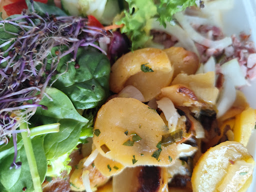 Read moreNettes Restaurant mit eigentlich netter Bedienung. Leider war das Essen es nicht. Das polnische Gericht war eigentlich Hähnchfleisch mit Käse gefüllt. Es sollte wohl eine besondere Art der Zubereitung sein, das es paniert in der Form eine spitzen Cocons serviert wurde. Leider war es die blanke Industriepanade und völlig trocken und hart. Durch die Feuchtigkeit des Krautsalats ging's zu essen. Ich würde sogar soweit gehen und sagen das außer den Bratkartoffeln alles küchenfertig , industriell hergestellt war an meinem Essen. Außerdem sollte es kein Problem sein bei einem Preis von 22€ von Pommes auf Bratkartoffeln zu wechseln. Konnte ich auch aber das kostete weitere 2€. Das ist bei diesem Preis kleinlich. Ich habe einfach eine bessere Küche erwartet. Auch das Rostbrätl von meinem Partner war trockenes Fleisch und nicht das woraus man normalerweise Rostbrätl macht.