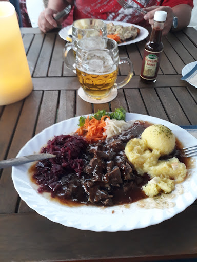 Sauberkeit:katastrophal und mehr als grenzwertig.Wenn die Küche genauso schmutzig ist wie der Gastraum und wie die Toiletten,dann erklärt sich vieles. Eine Sammelbestellung an Getränken ist nicht möglich gewesen,Getränke kommen einzelnd an den Tisch.Der Wirt lobt sich ständig selbst.Ungefragt kommen selbstgebackene Kekse,davon hatte eines eine schimmelige Apfelscheibe drauf.Entenbrust war nicht knusprig,sondern schwamm in einer undefinierbaren Sauce,in der ich eine Orangenschale fand. Die Zunge war zäh und ließ sich nicht schneiden.Unser Opa hatte so nur Kartoffeln und 2 Stückchen Spargel zum Essen.Die Kinder bestellten Schnitzel mit Pommes.Bekommen haben sie Tiefkühl-Nuggets mit Pommes,die von außen knusprig aussahen,aber innen total pappig waren. Mein Mann fragte,ob er ebenfalls Schnitzel bekommen könnte,der Wirt verzog genervt das Gesicht mit den Worten :"Wenn ich jetzt noch ein Schnitzel machen muss.." Also nahm mein Mann die Roulade,die leider nicht hausgemacht war,sondern aus der Dose. Das Rotkraut bei Ente und bei Roulade war essiglastig. Kaffee bestellt.Auf dem Unterteller lag eine Glasscherbe.Es kam kein neuer Kaffee,auch keine Entschuldigung,aber auf der Rechnung stand er. Der Schwarztee-Teebeutel war schon mal nass gewesen und abgetrocknet.Der Tee roch muffig. Ungenießbar und das hat noch keine Gaststätte bisher geschafft. Den bestellten Kuchen nahmen wir mit.Angeblich selbst gebacken...na klar,die Pappe von Coppenrath und Wiese war drunter,der Kuchen nach 5 Minuten Fußweg total pampig und weich.Sahnetorte!! Hier sollte die Hygiene schleunigst aufräumen und den Laden schließen!! 2 ältere Männer und eine Dame am Nachbartisch waren ebenfalls froh,gehen zu dürfen. Nie wieder!!! Das Essen und alles drum herum sind das...