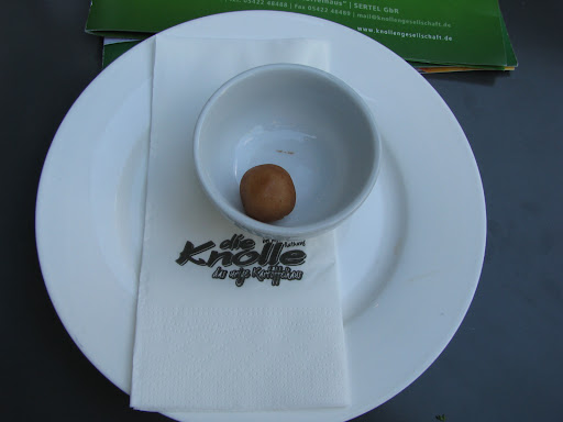 Read moreDas Lokal in schrillen Farben und Bildnissen zum Thema Knolle gefühlt seit 30 Jahren wurde hier nicht investiert. Wir saßen in einer Ecke mit Blick auf die Wand, den Dreck auf einem Wandvorsprung, konnten wir mit dem Finger aufnehmen. Da die Raumdecke auch noch tiefer hing und kein Fenster in Sichtweite, fühlten wir uns wie in einem gammeligen Keller. Nun, alles ja soweit noch erträglich denn wir sind gekommen um zu speisen. Leider war auch dieses sehr enttäuschend. Es gab einmal einen Rathausteller und einmal einen Kartoffelhaustellsr. Leider war das Essen nur lauwarm und zudem Fad.Gemüse aus dem Froster wie früher auf einer Silberne Hochzeit. Röstzwiebeln schwarz wie Holzkohle und Kräuterbutter hart wie ein Stein welche zudem auf dem lauwarmen Essen nicht zerfließen konnte. Auf einem Aufsteller vor dem Eingang werden die Gäste ( ich wünschte wir hätten uns auch nur einwenig so fühlen können) auf Personalmangel und die dadurch resultierenden verkürzten Öffnungszeiten hingewiesen ,beim hinausgehen haben wir dieses in keinster Weise bedauert. Nein ganz im Gegenteil. Es waren 40 Minuten unangenehm fühlen für 41€ und das bemühen höfflich und freundlich zu bleiben . Ja, nicht immer ist es negativ wenn ein Lokal für immer schließen würde. Das es auch anders geht ist uns durchaus bekannt, Kartoffelhaus Osnabrück...