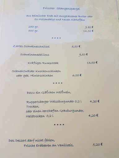 Der Service hat erst ein Getränk und dann eine Hauptspeise vergessen. Zwei Getränke kamen in falscher Größe. Spargel war aus, dennoch wurde die Karte gereicht. Wir haben sicherlich nur einen 'schlechten' Tag erwischt.