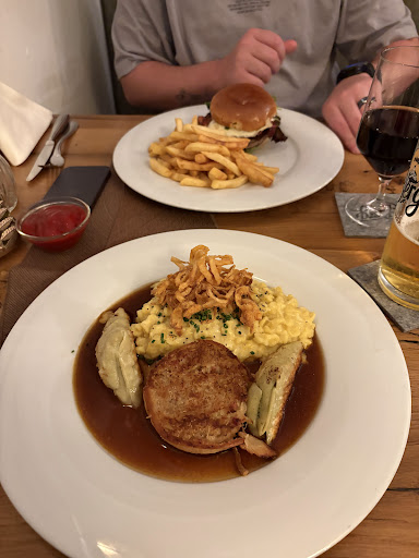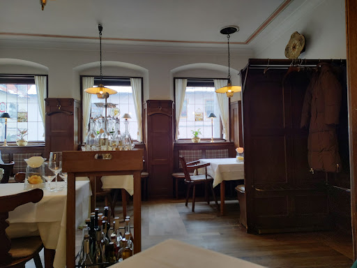 I was in Memmingen for the weekend and I really loved this place, it was one of the best rated restaurant and I wanted to try. It is close to the main square. The building is ancient and it is a fancy place. I had to book a day in advance, by calling. They speak English and the service was really kind and fast. I ordered a big beer (of course) and pork medallion with some veggies. (There are two portions: little and normal one, I have ordered the normal). It was delicious, the espresso was just perfect and the dessert was kind of fried apples donuts with cinnamon and ice cream, really tasty. I bet this desert is typical because I have seen it in other menus. Totally suggested. They also have English menu and it is possible to...