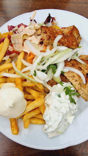 Spontan dort aufgrund Empfehlung hin und wir sind positiv überrascht. Es ist so kein Restaurant, mehr ein Imbiss, obwohl Sitzmöglichkeiten gegeben sind, selbst eine kleine Terasse, als Biergarten genannt, gibt es. Wir haben draußen gesessen und es war wsuper. Einzig was draußen zu verbessern wäre, etwas gegen die Fliegen machen. Denn sobald das Essen auf den Tisch steht wird man wirklich fies belagert. Daher Tip Kerzen Die dagegen wirken, gibt es und es wirkt dann gleich nochmal gemütlicher. Zum Essen können wir sagen, es war sehr lecker, so reichhaltig und das zu den Preisen, Daumen hoch. Lt. Menü Karte sind die Pommes keine Tiefkühlware, Ich würde das auch so bestätigen, es sieht aus als wären die frisch selbstgemacht. Beim nächsten mal werden ich mal nachfragen. Tzatziki war auch super lecker, sehr mild, einzig bisschen zuwenig bei dem Spezial Teller, bei der Fleischbeilage. Alles in allem Top, Wir kommen bestimmt wieder und empfehlen euch...