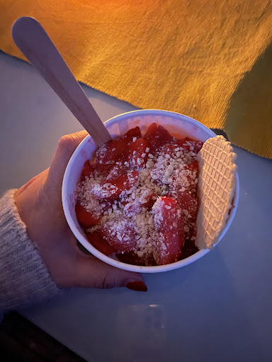 Aber dafür gibt es super Eis und wunderbare Becher! Die Eistheke, die fast den ganzen Innenraum ausfüllt, hat eine...