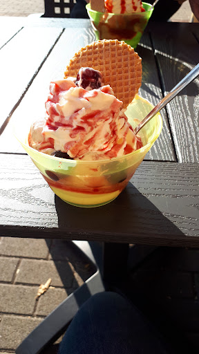 Super Eis, grosse Auswahl, nette Leute, und noch annehmbare Preise, gut, viel Platz dort zum Sitzen ist leider nicht, aber für uns auch egal, wir fahren vorbei, können direkt vor der Tür parken, hohlen unser Eis und fahren weiter, das ist für uns jetzt kein Problem, im Gegenteil, also sehr zu empfehlen, wenn man nicht unbedingt irgendwo "flanieren" muss und gesehen...