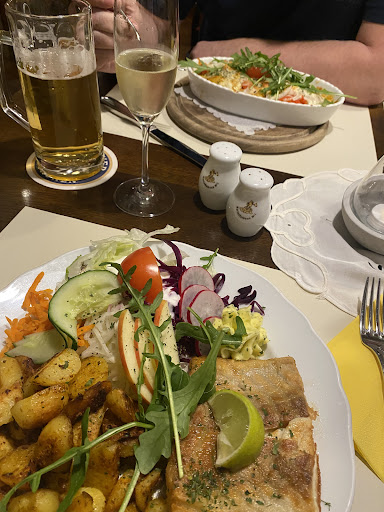 It is well worth a visit while in Little Merseburg. We were served by Sibille, and she gave us five-star service, a smile, and a great experience. The food was delicious, and the portions were generous. The dark beer tasted great, even for a normal non-beer drinker. The venue is kitschy but cozy, and prices are reasonable. People eat early, and all tables were full at 18:30 on a weekday. Booking a table is definitely a good idea on weekends or if you want to eat early. I would return and suggest it to friends and family.