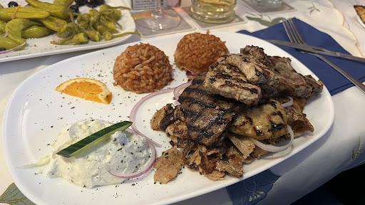 Satt aber nicht vollkommen zufrieden. Online bei Lieferando über Produkte und Preise vorinformiert, vor Ort dann der Schock. In der Auswahl die dicken Bohnen für 5,90€ in der Karte dann plötzlich 9,20€. Da vergeht einem der Appetit. Sicherlich ist alles teurer geworden, aber fast das doppelte, nein danke! Mag sein, dass die Lieferportionen kleiner sind, aber das geht dann doch zu weit. Dann lieber den Feta in Folie gegrillt. War für den Preis in Ordnung, aber das aufgeführte Brot in der Karte, fand den Weg zum Tisch leider nicht. Somit war es komisch zu essen, es fehlte halt etwas. Der Vorspeisensalat war lecker, dafür keine Abzüge aber dann kam die Metaxasoße. Was als krönendes Highlight gedacht war, entpuppte sich als mangelhaft. Da habe ich schon weitaus bessere gegessen. Das Fleisch darin zart aber der Geschmack der Soße war nix und somit war das ganze Gericht ruiniert. Auch der Tomatenreis war geschmacklich nicht überzeugend. Fazit: Bei den Hauptspeisen passt das Preis-Leistungsverhältnis, was die Menge angeht, aber geschmacklich wäre noch Luft nach oben. Die Vorspeisen sind überteuert. Auch die verschiedenen Preise sind nicht seriös. Das Problem besteht laut Rezensionen schon seit mindestens einem Monat. In dieser Zeit hätte man doch den Aushang am Eingang tauschen können. Vielleicht passiert es ja jetzt. ...