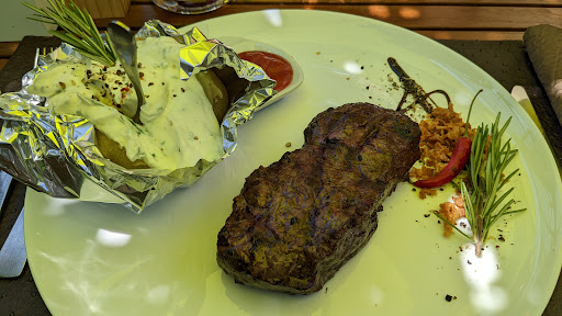 Our Airbnb host recommended this beautiful place as a restaurant nearby to eat at. I can honestly say this is one of the best recommendations we have received! The restaurant owners are very welcoming and lovely! The food is absolutely to die for. Gorgeous smoked meat cooked over a spinning circular grill. I have never seen anything like it. The flavour really came out too! The menu is clever as you pick your meat of choice and then whatever accompaniments you want. From 5 different types of potato to salad, ratatouille grilled and sautéed vegatables. Price is also great and very reasonable, considering the amount you get. Go in hungry! There is nothing I can fault. Thank you for such a wonderful meal...