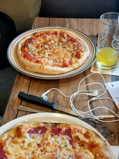 Gute Lage, schönes Ambiente. Guter Service. Eigentlich perfekt. Gilt leider nicht für das Essen. Die Pizzen sind handwerklich nicht besonders gelungen. Ich konnte 3 bei meinen Kollegen probieren. Der Teig war dünn (gut) aber extrem schlecht durchgebacken. Zuviel Flüssigkeit on top oder falsche Hitze oder Garzeit. Kein besonders guter Käse und gewiss zuviel davon. Beläge der absurdesten Art im Angebot, einen davon „durfte“ Ich probieren. „Pizza“ mit Gyros und Salat drauf, HÄ ??? Der Salat bestand im wesentlichen aus Kopfsalat und Gurken Scheiben, nix buntes nur grün. Vom Kopfsalat war kein Strunk entfernt worden, eigentlich bestand er überwiegend aus bitteren wässrigen Strunken. Die Zwiebeln waren extrem dick (geschnitten ? Niemals). Sehr sehr unangenehm auf so einen Balken zu beißen, der Nachgeschmack bleibt noch Stunden im Mund. Handwerklich gehört das zum schlechtesten das ich in der Gastronomie erleben durfte. Ich gehe nicht weiter auf die anderen Pizzen ein, der Grundgeschmack war ähnlich. Von den Schweine Medallions mit Pommes und Ketchup meines letzten Kollegen reden wir besser nicht ! Die Präsentation die Anrichte das gesamte „Gericht“ ist einer Bahnhofs Frittenbude unwürdig ! Wie unglaublich schlecht ! Ich mag es kaum glauben dass es Kunden gibt die dafür einen absolut unangemessenen Preis bezahlen (das Gericht wäre auch geschenkt schlecht und zu teuer). Insgesamt stimmt hier das Preis Leistung Verhältnis gar nicht. Für die Qualität ist ALLES extrem überteuert ! Gilt auch für die Getränke ! Würde aber nichts helfen. Preiswert würde den Schmerz lindern, die Qualität aber auch nicht verbessern. Die guten Rezessionen können nur Fake sein oder von völlig Ahnungslosen Anspruchlosen stammen. Für Gastronomie ist das hier deutlich zu wenig !!!...