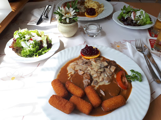Read moreLeider sehr enttäuschend. Wir waren 16 Leute mit Schlemmerblock. Ungelogen unsere Bestellungen wurden mindestens 3x aufgenommen und noch 3x nach korrigiert. Zwischenzeitlich sind dann 2 aus unserer Gruppe ausgestiegen und in die Pizzeria nebenan gegangen. Nach einer Stunde kam dann auch der Beilagensalat. Der Hirsch war für mich nicht als solcher zu erschmecken und ist meiner Meinung nach umsonst gestorben.Die Soße war schon leicht grau und generell waren die Teller nicht so toll angerichtet. Die Pilze aus der Dose und sehr verkocht. Und meinem Sodbrennen nach zu urteilen, wurde auch mit viel Pülverchen gekocht. Preise okay, allerdings hätte ich mich geärgert wenn wir hätten voll...