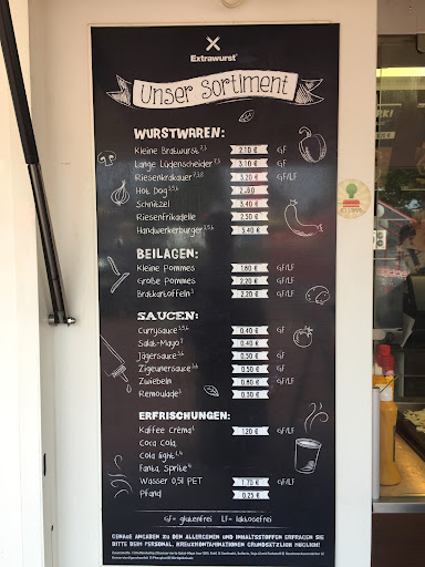 Read moreIch kenne die "Extrawurst" schon seit Jahren und kann über den Geschmack nichts negatives sagen. Das Preis -Leistungsverhältnis stimmt aber inzwischen überhaupt nicht mehr. Eine große Pommes sollte auch sichtbar größer sein als eine kleine. Schließlich bezahle ich ja auch für eine große Portion. Ebenso verhält es sich mit der Currysoße. Die hat noch nicht einmal die ganze Wurst bedeckt. Für eine Currywurst zum Preis von 7,30 € erwarte ich mehr. Die Portionen verkleinern und gleichzeitig die Preise erhöhen nennt man glaube ich...