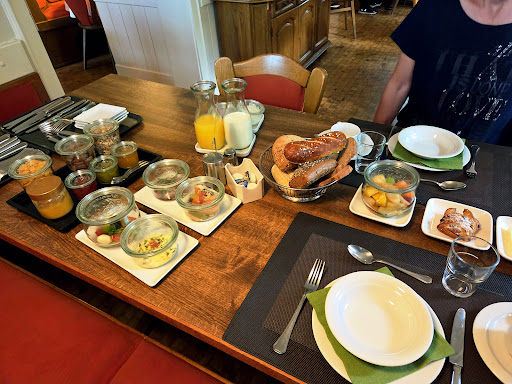 ➕️ Etwas, was ich hervorheben möchte, ist die Küche im Bezug auf das vegane Essen. Ich ernähre mich vegan und bin es gewöhnt, immer nur Salat oder Pommes zu bekommen. Der Chef wurde darüber informiert, dass ich mich vegan ernähre, sodass ich schon beim Abendessen ein Essen bekam, welches nicht auf der Speisekarte steht, aber welches vegan ist. Was aber folgte... damit habe ich nicht gerechnet: Am nächsten Morgen, am Frühstückstisch, erwartete mich ein riesiges Buffet am Tisch und 80% war vegan (ich bin nicht alleine gereist, die anderen waren einmal Vegetarier und einmal Fleischesser). Alle Brötchen waren vegan. Es gab Obst und Gemüse. Der Hummus schmeckte mega. Sogar die Wurstplatte war ausschließlich vegan. Das Beste: Aufstriche aller Art, die ich noch nie gegessen habe und alle waren vegan. Ich schwebte echt im siebten Himmel bei diesem Frühstück! 🌱 😋