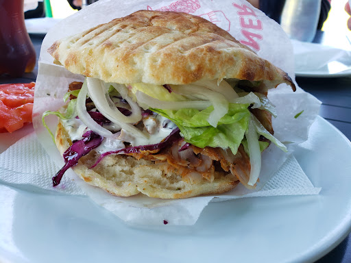 Wo soll man anfangen. Freundlichkeit ist hier leider fehl am Platz genauso wie ein Lächeln. Es ist schon sehr schade das man mit einer genervter Körpersprache und Augen verdrehen empfangen wird. Wir hatten einen Dönerteller (9€) und einen Salat mit Dönerfleisch (8€). Zur Preisleistung haben wir festgestellt das man beim Dönerteller viel weniger für das Geld bekommt als für den Salat mit Dönerfleisch. 🤔 Was wir bei der Zubereitung gesehen haben wird den Vegetariern nicht gefallen. Mit der Salat Zange hat man auch das Fleisch auf das essen gemacht. Naja. Hygiene wird hier leider auch nicht groß geschrieben. Die Mitarbeiter ihre Kleidung ist zum Teil sehr verschmutz. Auf der Damen Toilette müffelt es extrem. Weder der Handtrockner funktioniert noch nicht mal der Handtuchspender war voll. Im Restaurant sitzen ist Horror für die Ohren. Viele Angestellte sind nur mit ihrem lautstarken Handy beschäftigt anstatt mal die Tische abzuwischen oder den Boden zu säubern. Bei unserem Tisch lagen einige Pommes auf dem Boden. Der Tisch selbst war klebrig, und man hat noch die Essensreste vom Vorgänger leider gesehen. Auf die Terrasse sitzen war leider auch nicht möglich, da durch die heruntergekommenen und undichten Schirme alle Tische nass waren und somit die Schirme ihren Zweck nicht erfüllen. (viele Löcher und viele...