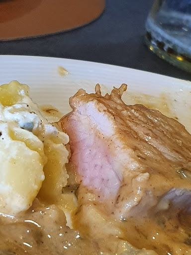 Hauptspeisen: Kartoffeln total verkocht. Fleisch erstmal keins, erst nach 20 Minuten wurde es aufgefüllt. Das Schweinefleisch war innen roh und nur "gekocht" (nicht angebraten) Die Soße in dem das Fleisch lag war geschmacklos. Mit viel Pfeffer ging es. Die Spaghetti mit einer undefinierten Soße war ungenießbar. Krautspätzle waren nichts besonderes.