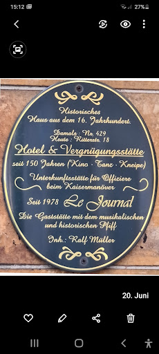 Read moreGetränke...und Musikauswahl ist unübertroffen weit und breit. Beste Musikkneipe ever. Der Wirt Ralf Müller ist ein lebendes Musiklexikon. Wikipedia weiß auch kaum mehr als Ralf. Dazu kommt, dass er selbst singt.....Titel von Elvis, Buddy Holly, Eddie Cochran und viele andere Musiker hat er einfach drauf. Dazu seine Carmen hinter der Theke. Ein unschlagbares Team. Leider geht die Zeit für das LE JOURNAL nach fast 42 Jahren zu Ende. Der Vermieter nimmt Ralf das Lebenswerk....und vielen Gästen aus Nah und Fern das große Vergnügen, wunderbare Abende in der besten Kneipe in OWL erleben zu dürfen. Danke Ralf, danke Carmen. Bleibt gesund.....und trotzdem munter. Ich danke für viele wunderbare Abende. Herr Vermieter, Ihr Sohn war mit seinen Freunden auch oft zu Gast im Le Journal. Für ihn hat Ralf sogar noch bis zuletzt Musikwünsche erfüllt, z.B. von ADAMO.... Wo geht Ihr Sohn nach der Schließung hin???? Es ist unfassbar, was hier...