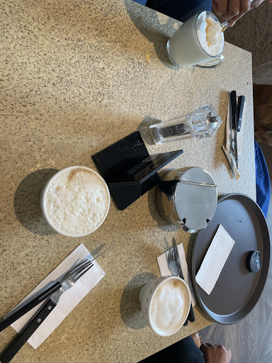 Wir haben heute morgen dort gefrühstückt. Die Mitarbeiter waren sehr freundlich. Wir hatten einen Hund mit was dort auch kein Problem ist, sowohl innen wie auch draußen (Wassernapf wurde sofort für ihn bereit gestellt). Ich habe mir einen großen Cappuccino mit Sojamilch bestellt und habe dann erst einen Kleinen bekommen. Habe, aber lieber Weise ,dann als Entschädigung direkt einen großen Cappuccino bekommen (sehr sehr nett). Wir haben auch heiße Milch mit Honig bestellt, was etwas komisch war, war dass wir den Honig selbst in die heiße Milch machen mussten. Dort wurde uns dann auch nur ein augenscheinlich billiger Honig dafür bereit gestellt. Ich habe mir auch noch ein „heißes Brot“ bestellt- Bruschetta Sizilien. Es war super lecker und hat von der Menge völlig gereicht. Meine beiden Freundinnen haben sich ein heißes Brot mit Chicken bestellt, welches wohl auch immer super lecker schmeckt.