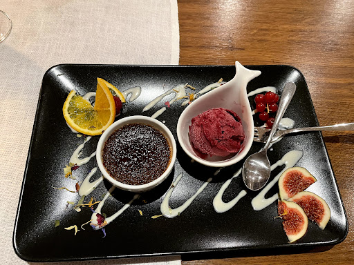 Read moreIch war während meiner Schwangerschaft hier. Leider war es ein sehr enttäuschender Restaurantbesuch. Auf meine Frage, ob die Soße des von mir favorisierten Essens mit Alkohol zubereitet wird, wusste die Servicekraft keine Antwort und musste in der Küche nachfragen. Sie kam dann zurück mit der Antwort, dass es so sei. Als ich dann fragte, ob der Alkohol dann weggelassen werden könnte wusste sie wieder keine Antwort und ging genervt mit einem lauten Stöhnen und knallender Tür wieder in die Küche. Als sie dann gefühlt nach einer halben Ewigkeit wieder kam, teilte sie mit, dass der Koch die Soße nicht ohne Alkohol zubereiten könnte. Der Alkohol würde ja „verkochen“. Diese Aussage ist nach derzeitigen wissenschaftlichen Erkenntnissen schlichtweg falsch. So bekam ich also mein Nudelgericht mit trockenen Nudeln, was natürlich überhaupt nicht geschmeckt hat. Ich frage mich, ob auch Kindern das mit Alkohol zubereitete Essen serviert wird. Ohne Nachfrage wäre ich trotz offensichtlicher Schwangerschaft nicht auf den Alkohol im Essen hingewiesen worden. Auch eine Kenntlichmachung in der Speisekarte fehlt. Der Nachtisch war dann auch nicht besonders herausragend. Alles in allem mit unfreundlichem Service, lautem Ambiente und mäßigem Essen kein...