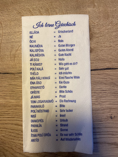 Wie man mitbekommt, erhalten einige Gäste einen Ouzo, andere nicht. Wir auch nicht, was sicher nicht am üppigen Trinkgeld liegen kann. Schade....