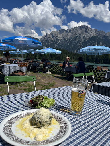 I had an amazing meal here! Traveling solo and was in Munich for Oktoberfest, thought it would a great idea to explore Mittenwald and go for a hike. The food here is really good and filled me up for a 10-mile hike. I do have to note that this place is cash only because I - a very much american tourist at heart - only brought my credit cards. It was so so sweet of the owner to accept Paypal transfer because I was literally planning on going back to Munich, get my cash, and come back here the next day and pay for the food. It was really nice of them to be able to accommodate for my own mistake. The view here is also just absolutely gorgeous - you get to see the snow-covered mountains and a beautiful lake in the background as you...