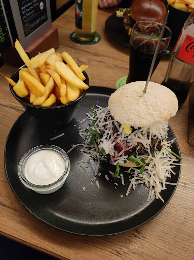 Wir saßen sehr gemütlich auf Hochstühlen bei Rockmusik in angemessener Lautstärke. Die Karte ist sehr übersichtlich und für jeden etwas dabei. Da meine Frau stark allergisch auf Paprika und Chilli reagiert waren sehr erfreut, dass sich die Küchenchefin Zeit nimmt um die Bestellung im Detail mit uns durch zu gehen und Alternativen für Komponenten der Bestellung anbietet, welche meine Frau nicht essen darf.