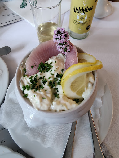 Das war 2019; Es gab ein tolles Buffet, die Bedienung war total aufmerksam und freundlich. Die leckere Auswahl an frischem Brot, Brötchen, Croissants, Aufschnittplatten, Käse, Forelle, Lachs, Krabben, Rührei , Obstsalat usw. usw. war wirklich vorzüglich. Wir können das Restaurant wirklich empfehlen. Das wären 5 Sterne, ABER im Juli 2020 An der Qualität des Essens hat sich nichts geändert, aber an der Bedienung. Vielleicht liegen die Nerven auch blank durch die Corona-Zeit. Die Kellnerin war unfreundlich (Die Bitte um ein Nachgaren des Steaks wurde so beantworter: "unsere Steaks sehen immer so aus, das hat schon seine Richtigkeit"). Das Nachfragen um eine Kerze o. ä. wurde mit "ne, haben wir nicht" abgekanzelt. Wir waren 12 Personen, mussten an zwei Tischen sitzen, haben das auch akzeptiert . Schon gegen 22:00 h hätte uns die Kellnerin am liebsten verabschiedet. Wir haben im Garten gesessen, wo es dann auch schon ziemlich dunkel war. Aber eine Kerze gab es ja nicht. Wir haben das dann noch eine halbe Stunde ausgehalten, dann war für uns Feierabend. Schade, aber leider will aus unserer Runde niemand mehr...