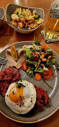 Read moreDas Ambiente an sich ist schön. Leider wurden wir trotz vorheriger Reservierung an einen zu engen Tisch für 8 Personen gesetzt. Die Dame die uns bediente war ruppig und kurz angebunden. Das Essen war schön angerichtet, aber geschmacklich hat dann doch einiges gefehlt. Ich hatte den Steakteller und das Schweinefilet war meiner Meinung nach nicht mehr gut. Auch 3 andere Personen am Tisch die ebenfalls Schweinefilet auf Ihren Tellern hatten ließen dieses zurück gehen. Wir teilten der Servicekraft mit, dass etwas mit dem Fleisch nicht Ordnung sei und dass wir der Meinung sind, dass es verdorben ist. Sie war kurz angebunden und vermittelte uns quer durch den Raum rufend, so dass auch alle anderen Gäste auf uns und unsere Beanstandung aufmerksam wurden das Gefühl, dass etwas mit uns nicht stimmt. Ich hatte gehofft das man sich das Fleisch zumindest mal ansieht damit man möglicherweise anderen Gästen nicht von demselben Fleisch servieren würde, falls ein Mangel festgestellt werden würde. In unserer Erinnerung bleibt ein Abend mit mäßigem Essen mit Mängeln serviert von einem unfreundlich bis unverschämten Service. Schade um das Geld...