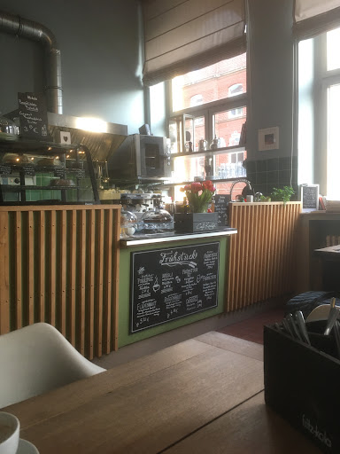 Hübsches kleines Café in renoviertem Gründerzeithaus am Adenauerplatz. In Mönchengladbach ist die Dichte schöner Cafés nicht besonders hoch. Umso mehr freut man sich über dieses hübsche Café am Adenauerplatz, wenige Minuten von der Haupteinkaufsstraße entfernt. Das Personal ist sehr freundlich, die Atmosphäre gemütlich, was auch am netten Geschirr liegt. Allzu viele Sitzplätze gibt es nicht, aber man sitzt sehr bequem in ruhiger Umgebung. Wir hatten Himbeerkuchen mit Mandelboden, der exzellent war, dazu Milchkaffee und Latte Macchiato. Der Schokokuchen sah ebenfalls gut aus, passte aber leider nicht mehr rein. Der Kaffee war zwar recht heiß, aber nach meinem Geschmack noch nicht zu heiß. Das Frühstücksangebot sieht vielversprechend aus, das wird als Nächstes probiert. Sicherlich sitzt man im Sommer draußen auch sehr schön. Insgesamt ein schöner Nachmittag, es wird nicht der letzte Besuch gewesen sein!