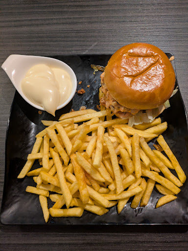 Während die Familie sich die "Gambas all you can eat" bestellte (da sitzt man dann auch mal etwas länger als bei 'ner Currywurst), hatte ich mir den "Backfisch mit Kartoffelsalat gegönnt. Das Essen entspricht einer besseren Imbissbude, insbesondere auch in der Anrichte der Speisen, auch wenn die Zitronenspalten bei den Gambas fehlten. Das die Gambas in reichlich Öl gebraten wurden, konnte man auf der Servierplatte hinreichend erkennen. Serviert wurden die Gambas mit frittierten Kartoffelscheiben, Brot und Dips. Geschmacklich war das alles gut und auch wirklich reichlich. Eine freundliche Bedienung kümmerte sich hervorragend um uns und servierte sofort Neues, wenn etwas zur Neige ging; Brot, Dips oder auch Kartoffeln. Mein Backfisch mit Kartoffelsalat war ebenfalls ok. Kein kulinarisches Highlight, aber eine solide Leistung für eine Imbissbude.