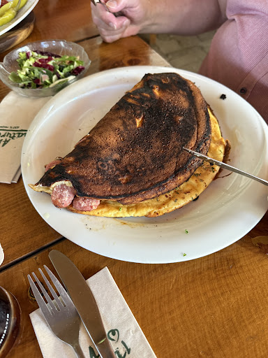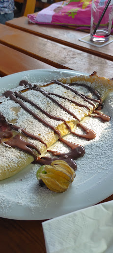 Beim Essen waren die Meinungen in unserer Runde geteilt: Nur 2 von 9 Personen waren wirklich zufrieden. Einige Gerichte waren kaum gewürzt, das Steak und ein Pfannkuchen waren leider stark verbrannt, und der Salat war einfach nur von Traurigkeit nicht zu übertreffen. Mein Pfannkuchen Bombay war lecker! Positiv zu erwähnen sind die großzügigen Portionen bei Pfannkuchen und Schnitzel.