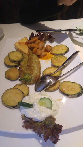 Read moreLeider kann ich das Restaurant überhaupt nicht empfehlen! Wir waren mit 2 Pärchen dank der Couponhefte dort. Da freut man sich den ganzen Tag drauf Abends lecker griechisch Essen zugehen und landet, in einem von außen ordentlichem Haus. Allerdings geht es dann los. Direkt neben dem Eingang steht ein "abgeranztest" Salatbüffet, dessen Niesschutz so dreckig ist das man sich bezwungen fühlt den Kopf unter diesen zustecken. Was man dort vorfindet hat mit Salat nicht so viel zutun. Ein paar Sachen die den Eindruck machen als ob sie schon mehrere Tage dort stehen. Das Essen war eine absolute Zumutung. Nicht nur das wir bei der Vorspeise Brot bekommen haben, welches definitiv nicht mehr frisch war und so beim bestreichen schon auseinander fiel. Nein die Gerichte hatten mehr mit einem frittiertem Etwas zutun was teilweise nicht definierbar war. Die Kartoffelscheiben (welche nicht bestellt wurden) triften nur so vor Fett . Drücke man mit der Gabel darauf lief das Öl nur heraus. Das Fleisch muss man unterscheiden in Gyros, war irgendwie eher Fett von der Stange, und Steaks welche so trocken waren das man fast daran erstickte. Nicht mal ein Klecks Zaziki war auf dem Teller zufinden, diesen musst man dann extra für einen happigen Preis von 4 Euro dazu bestellen. Aldi lässt dabei grüßen.(Vorne am Tressen stehen noch die benutzen Behälter) Dieser macht allerdings auch nicht mehr den frischsten Eindruck. So wirkten die Teller doch sehr vorbereitet. Kaum bestellt schon stand er bereit (allerdings nicht bei uns sondern an der Ausgabe) Die "Zustellung" dauerte dann noch weitere 5 Minuten, was eher daran lag, dass das Personal wohl was aberwitziges auf Ihren Handy hatte. Als dann am Ende gefragt wurde ob es geschmeckt hatte und dieses verneint wurde änderte sich die Stimmung des Personals gravierend. Am Anfang noch freundlich (zuvorkommend waren Sie die ganze Zeit nicht, so brauchten wir 3 Versuche um noch was zutrinken zu bestellen, man war das Handy spannend) wurde man nun pampig und unfreundlich. Leider verstanden wir nicht was gesagt wurde, allerdings machte man sich offensichtlich über uns lustig. Es folgte keine kleine Aufmerksamkeit wie ein 2ter Ouzo ( welcher übrigens sehr nach Wasser schmeckte) oder ein Eis, Kaffee etc. Sehr enttäuschend.